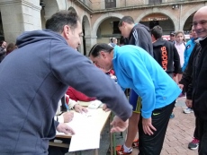 Un rato antes de la llegada de los corredores, en bicicleta habían alcanzado la meta en 40 minutos Adrián Martín y Adrián González, dos amigos de 14 y 15 años, respectivamente, habituales practicantes de ciclismo. Tras ellos entró Adolfo Pineda, de 25 años, estudiante hondureño de Topografía desde hace tres años en la Escuela Politécnica de la Universidad de Salamanca.