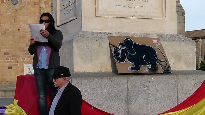 El manifiesto leído por la concejala de IU, Sara Doval, ha llamado a un "proceso constituyente republicano", que "devuelva el poder de decidir sobre la forma de estado a los ciudadanos", ya que "el 75 por ciento de los ciudadanos de hoy no votaron la Constitución de 1978, absolutamente vacía de contenido pues en sus principios sociales y de derechos ciudadanos no se cumple".