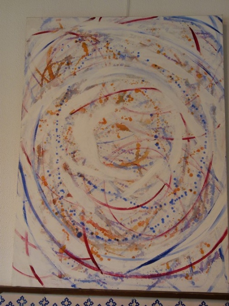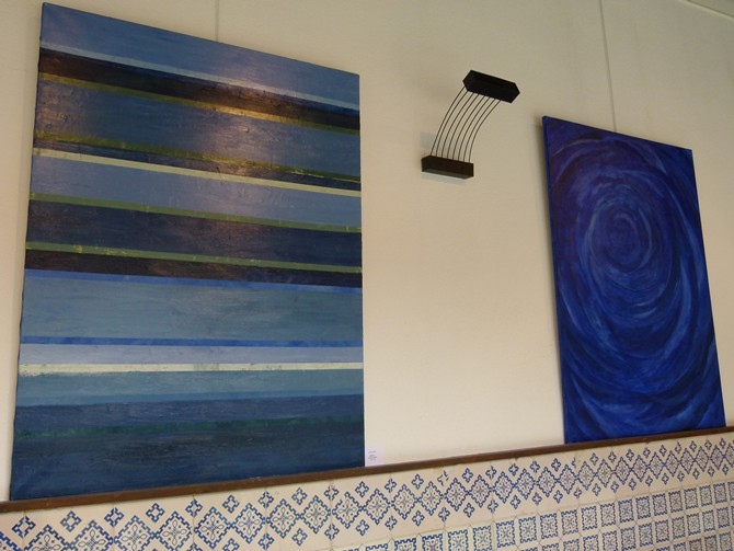 El título de la muestra, 'Esenciales' (abierta hasta el 20 de junio), obedece "a la búsqueda de los colores esenciales y primarios, que debe buscarse en todos los aspectos de la vida, como dice la actriz María Morales, con la que aprendo arte dramático".