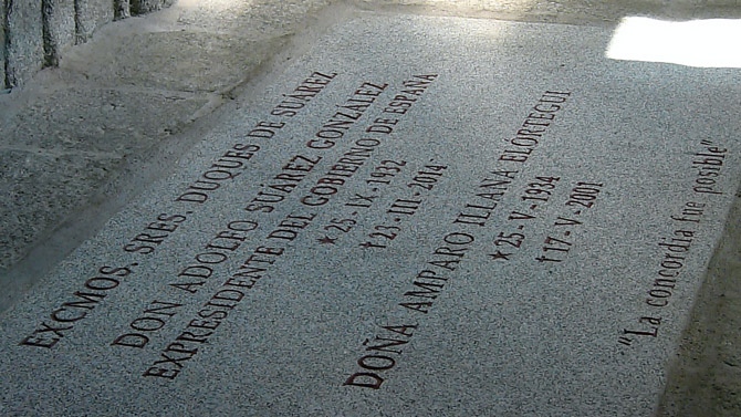 El lugar donde reposan los restos del expresidente del Gobierno junto a su esposa se encuentra a unos metros de la tumba del medievalista Claudio Sánchez-Albornoz, y fue visitada el viernes por varios grupos de abulenses, antes de que a última hora de la tarde dos rutas discurriesen por el camposanto abulense para conocer sus detalles y secretos.