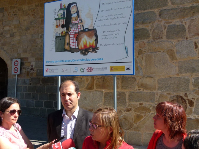 Un cartel en el que aparece Santa Teresa cocinando entre pucheros busca "una correcta atención a las personas con discapacidad”, según ha explicado la concejala de Accesibilidad, Noelia Cuenca, quien ha apuntado a esas frases que "sobre todo personas mayores, dirigen, por ejemplo, a personas en silla de ruedas, tales como 'mi niño' o similares".