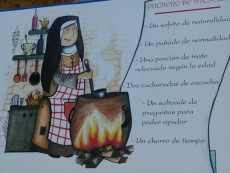 En el cartel, la santa aparece junto a la leyenda 'puchero de la atención', en el que se insta a echar "ingredientes básicos" a ofrecer a las personas con discapacidad para componer la receta: "un sofrito de naturalidad, un puñado de normalidad, una porción de trato adecuado según la edad, dos cucharadas de escucha, un salteado de preguntas para poder ayudar y un chorro de tiempo".