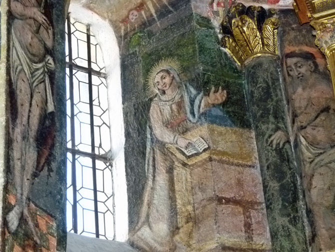 En el ábside norte, en la capilla de la Inmaculada Concepción, al eliminar el enlucido blanco que cubría el interior de la ventana oriental, ha aparecido una escena completa pintada de La Anunciación.