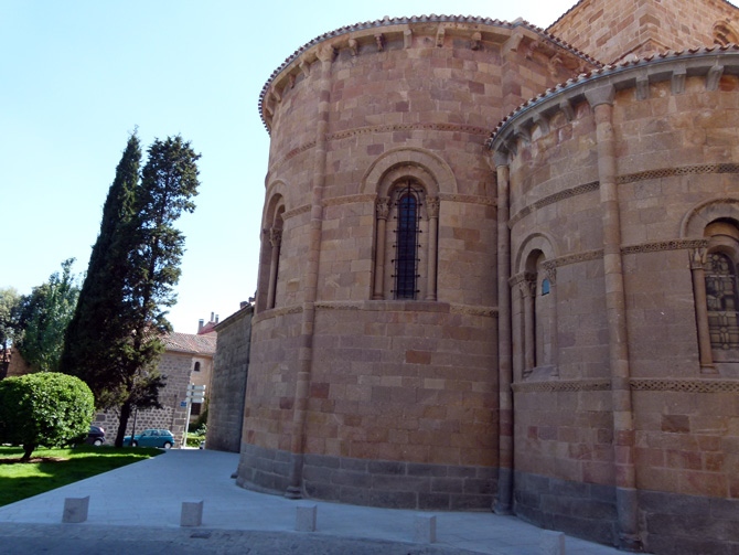 Para alejar el agua de lluvia y de riego del exterior de los ábsides, la vegetación se ha apartado con una pavimentación que impide que se filtre a los cimientos y la conduce hacia un canal enterrado. Además, se ha intervenido en las cubiertas de los ábsides para restituir su función de cobijo impermeable y de evacuación de agua, para que así no resbale por cornisas y muros y dañe la piedra.