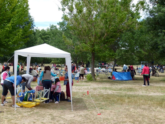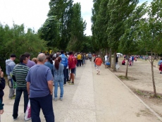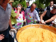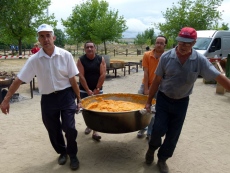 Miembros de las asociaciones de vecinos tuvieron la ayuda de numerosos concejales y el alcalde para esa labor, y repartir el agua y el pan o el vino que completaron el menú, a un euro, cuya recaudación la Federación de Asociaciones de Vecinos (FAVA) destinará a una entidad benéfica.