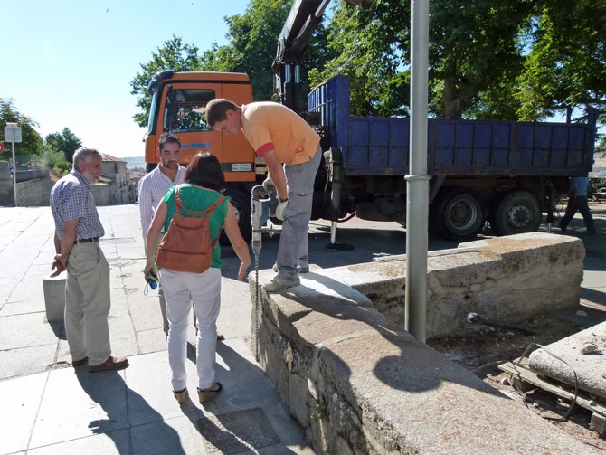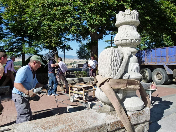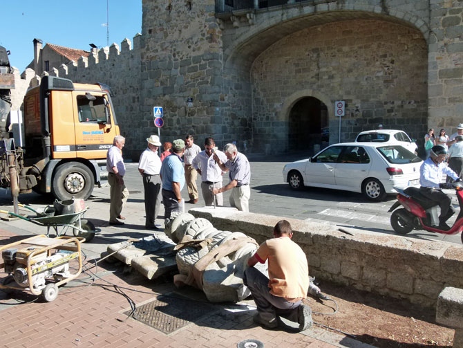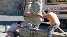 De 1,7 metros de altura y unos 700 kilos de peso, a la instalación ha acudido la concejala de Patrimonio, Beatriz Jiménez, que ha dicho que este "pretil maravilloso es un buen sitio para colocarlos".