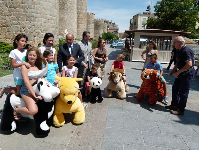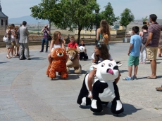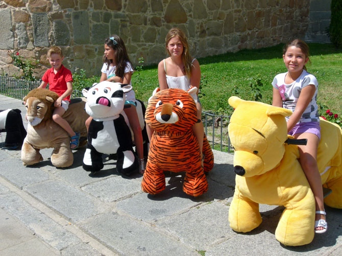 Los 'aviñecos' son muñecos con peluche en forma de animales, como un tigre, un león, una vaca o un elefante, dispuestos para que los pequeños los guíen.