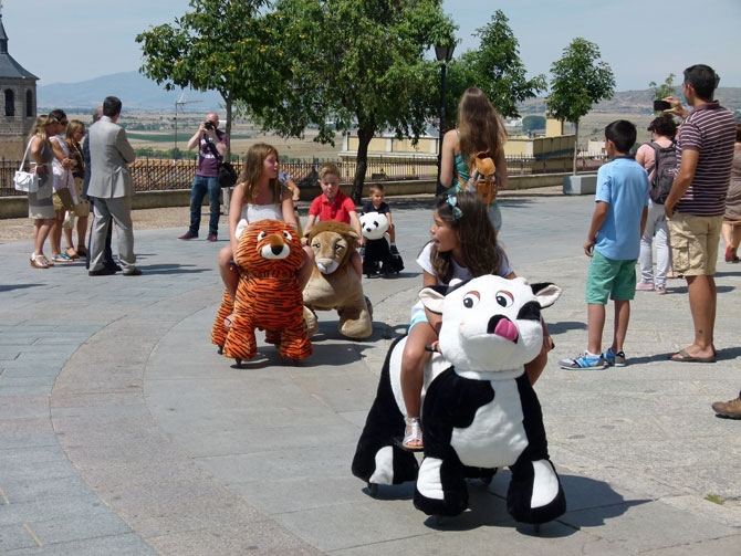 Gracias a estos muñecos con motor eléctrico (dos euros por diez minutos) se han creado dos puestos de trabajo para personas con discapacidad intelectual -una de lunes a viernes y otra para los fines de semana-.