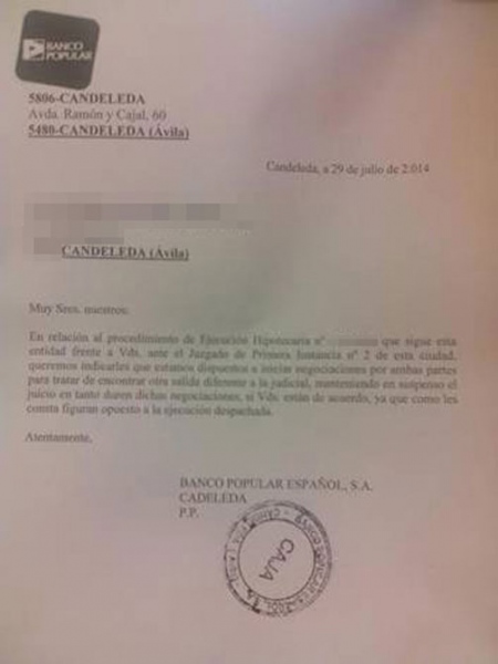 "De palabra ya no nos fiamos", han asegurado, por lo que han recurrido a permanecer desde las 10 horas en la oficina para instar al banco a un compromiso. "Al ver que no se nos daba una solución en la oficina, hemos llamado a la sede regional del banco en Valladolid", ha señalado. Casi tres horas después y cuando quedaban diez minutos para las 14 horas, la hora del cierre, les entregaron una carta en la que la entidad bancaria se compromete a negociar dejando la ejecución hipotecaria a un lado.