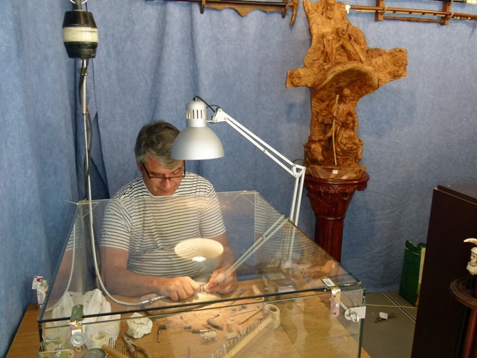 Marroquinería, artesanía en madera y barro, orfebrería, jabones, vidrios, cerería, encuadernación... hay representación de todas las modalidades: son 36 artesanos de distintas procedencias -uno de ellos de Francia-.
