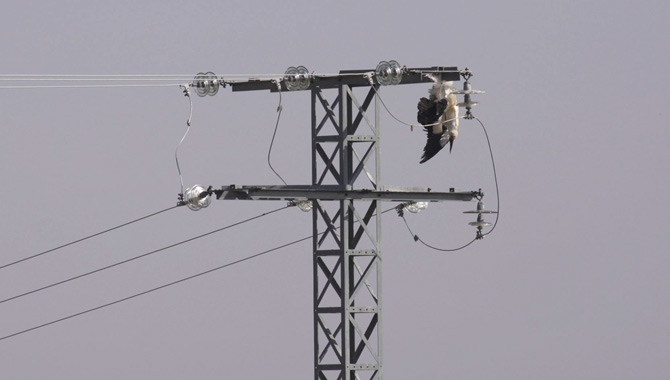 "La peligrosidad de este tramo de tendido eléctrico de alta tensión puede considerarse muy alta", asegura. Las torretas sin bóveda y con aisladores suspendidos, falta de señalización y salvapájaros en las líneas de distribución son factores perjudiciales, junto con la falta de posaderos naturales.