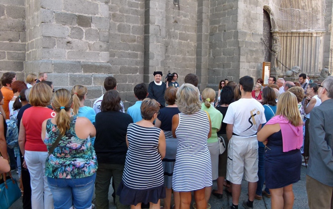 Salió del edificio de la calle Caballeros en la que nació y se acercó a la plaza del Mercado Chico, donde se encontró con Santa Teresa, donde además de destacar que ambos fueron bautizados en la Parroquia de San Juan, ella le dejó claro haber eclipsado la figura del polifonista, que reconoció que por culpa de la santa él fue olvidado en la posteridad.