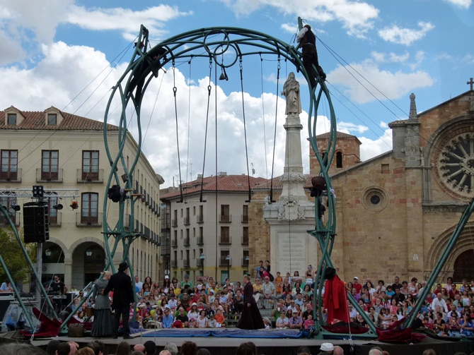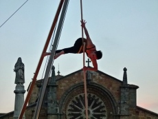 En el Mercado Chico también pudo verse por vez primera otro montaje en nuestro país: 'Expertas' de la compañía hispano-francesa Albadulake. Cuatro mujeres protagonizan un espectáculo en el que juntan técnica y fuerza para acrobacias aéreas sobre el alambre, con un mensaje crítico sobre el uso comercial de la imagen de la mujer.
