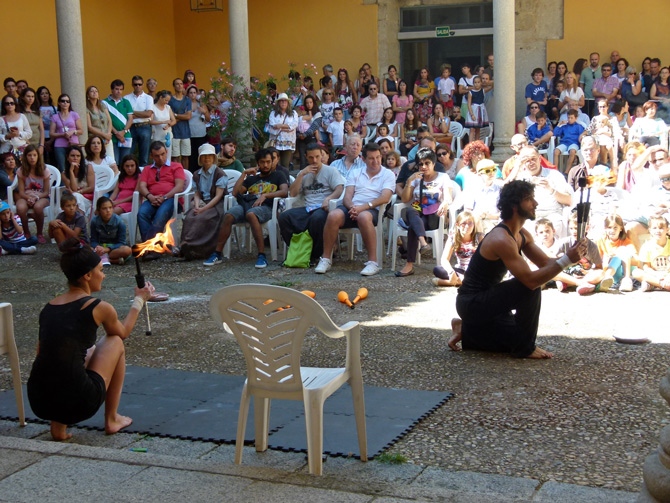 Mientras los palacios que acogieron espectáculos tuvieron que cerrar sus puertas al contar con el aforo completo, las calles fueron animadas por las fanfarrias de los portugueses 'Anónima Nuvolari' son música italiana y los hispano-franceses Cie Maravilla, con Chavolo, Malajo y Nonito.
