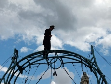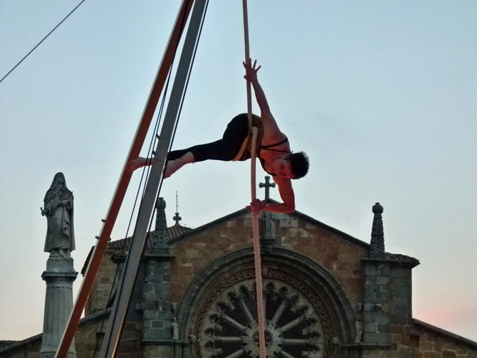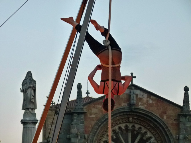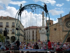 El dúo fue protagonista de una de las actuaciones del sábado, en la que los franceses Les P´tits Bras repitieron la actuación del viernes por la tarde sobre una estructura con diseño art nuevau como si de un circo de hace un siglo se tratase, seguramente con la misma admiración del público que entonces.