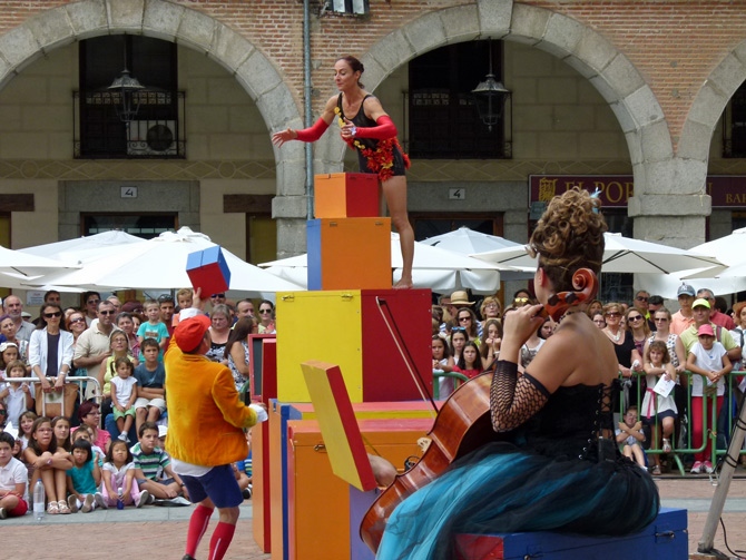 'Dancing color box' se estrenó el domingo en España en el Mercado Chico con bailarinas y malabaristas al ritmo sensible y de humor de una violonchelista.