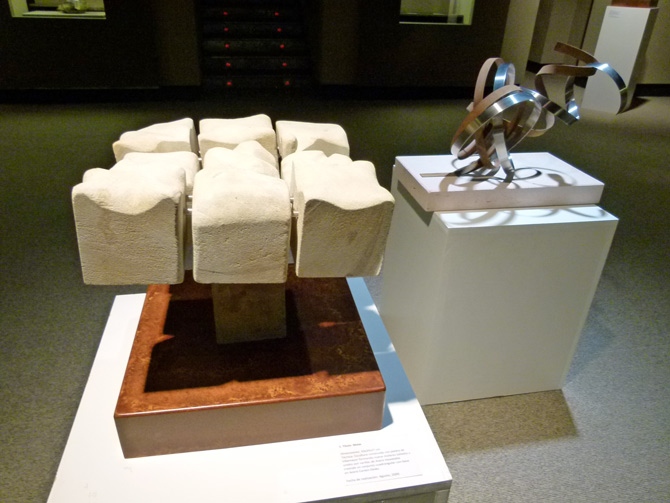 'Un paseo por el taller' es un reflejo de la labor del artista (Valladolid, 1955), en dos etapas. La inicial y abstracta, "con elementos primarios como piedra, madera y metal con diferentes tratamientos", y la que tiene una mirada constructivista, "con la geometría de la composición y el uso de materiales industriales".