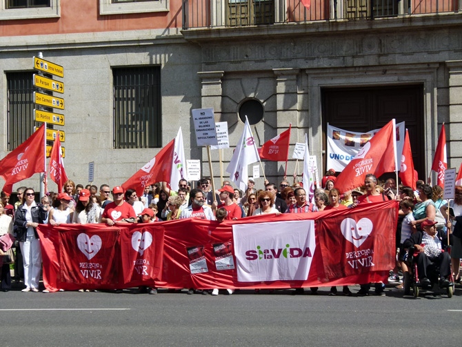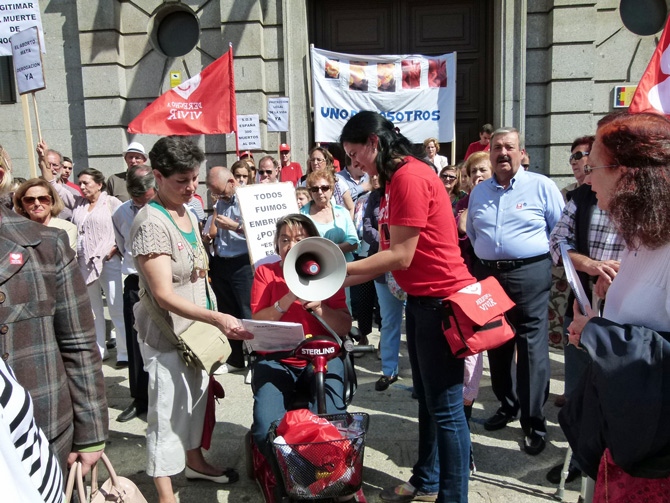 Convocada por la organización Derecho a Vivir en paralelo a ciudades de toda España, el manifiesto leído por Cecilia del Real, su coordinadora, ha lamentado que el Gobierno "no ha cumplido su compromiso de derogar la ley y mantiene vigente una ley que contempla el aborto como un derecho de la mujer", y que "permite la eliminación en serie de cientos de seres humanos enfermos".