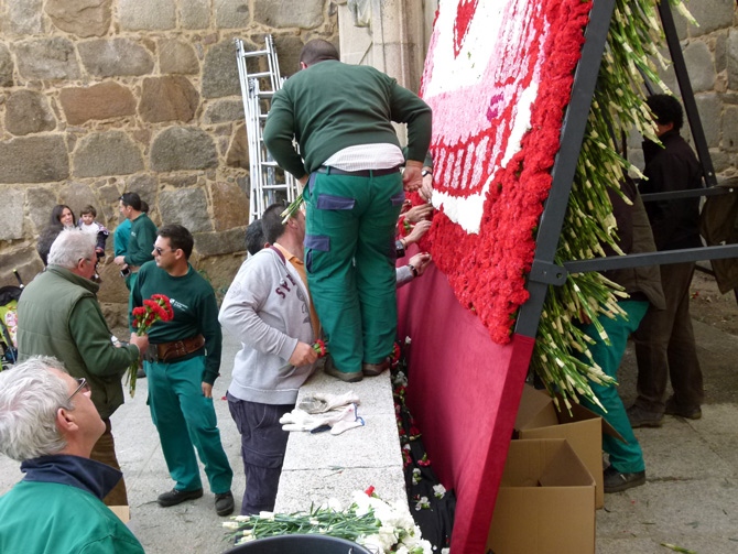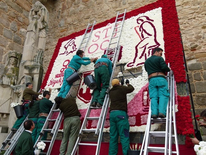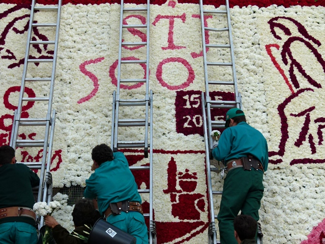 Las flores se han colocado en un tablero de cinco metros de ancho por 5,5 de alto, más grande que el de otras ocasiones, cuando se utilizan unas 20.000 flores. De hecho, el presupuesto se duplicó respecto al año anterior y se elevó de 3.000 a 7.000 euros, según UPyD.