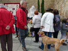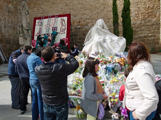 Unas 800 personas, representando a más de un centenar de instituciones, asociaciones, entidades, grupos, clubes deportivas, peñas y otras asociaciones y grupos, además de particulares, pasaron en la mañana del lunes junto a un monumento dedicado a La Santa situado junto a la muralla. Se trata de la segunda ocasión en que la ofrenda se celebra por la mañana.