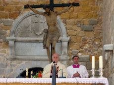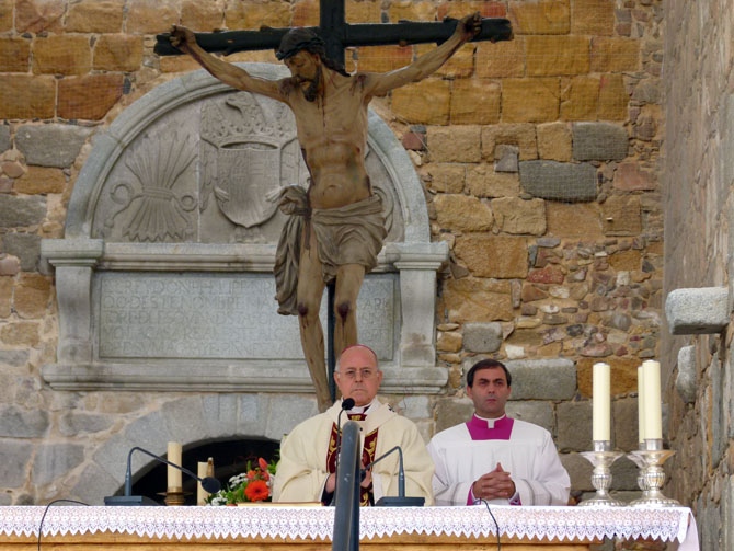 Con una temperatura agradable, la ceremonia estuvo presidida por las imágenes, a los lados del altar, de Santa Teresa y la Virgen de la Caridad, y con el Cristo de los Ajusticiados en el centro. Éste fue trasladado a primera hora de la mañana desde la ermita del Humilladero, las otras salieron de la Catedral media hora antes de la misa, que comenzó a las 11 horas.