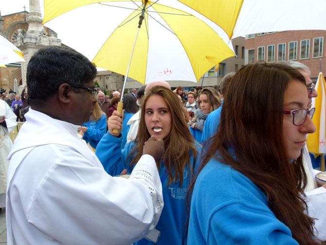 No se cumplió el nivel amarillo de hasta 40 litros por metro cuadrado de lluvia entre las 9 horas y la medianoche. "Me han dicho que el día La Santa nunca llueve en Ávila", comentó a primera hora el vicario general de los Carmelitas Descalzos, José Emilio Martínez. VER FOTOS DE LA MISA DE APERTURA DEL CENTENARIO.