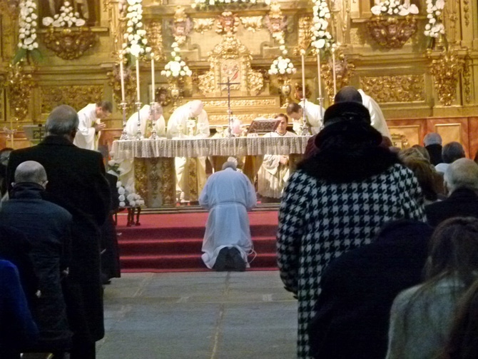 El rito de la postración ante sus compañeras y sus respuestas de compromiso a la entrada en la vida monástica fueron al comienzo de la celebración, porque al final familiares y asistentes pudieron ver, quizá en el momento más emocionante, como todas las monjas, una a una, la daban un fuerte y emocionado abrazo de bienvenida.