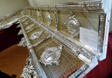 O que no pueden apreciarse, como la corona, en la que puede verse el torreón del escudo de Ávila. Son 25 piezas las que se exponen en el Palacio de los Verdugo con el título de 'Esperanza, arte y devoción', entre las que figuran los respiraderos del trono, bañados en plata.