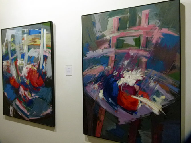 Bodegones, paisajes y composiciones con colores intensos desembocan en la abstracción, que desde los años 90 toma sus lienzos con "pinceladas cada vez más imperceptibles" sobre espacios geométricos.