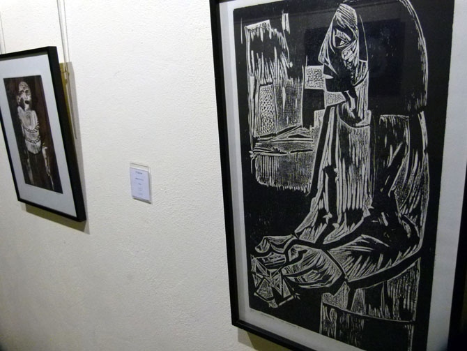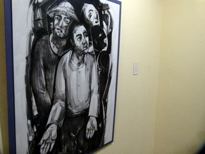 Los primeros trabajos que cuelgan en el Palacio de los Serrano datan de 1958 y los últimas de 2008, abarcando así toda su obra, que comenzó como miembro del colectivo Estampa Popular, grabadores que daban fe de una crítica social y política en los años 60, y en su caso marcado por el dibujo, hilo conductor de su trayectoria.