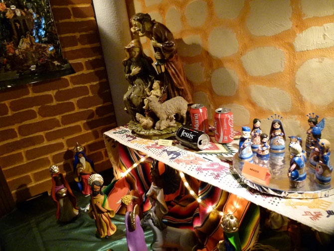 120 nuevos belenes se han incorporado a una muestra que contiene 3.200 piezas, procedentes desde Costa Rica, Guatemala, Asia, África... como un nacimiento tuareg del Sahara o tehuelche argentino o el mejicano con figuras diminutas de barro unidas a una sola pieza con alambre.