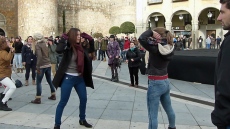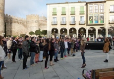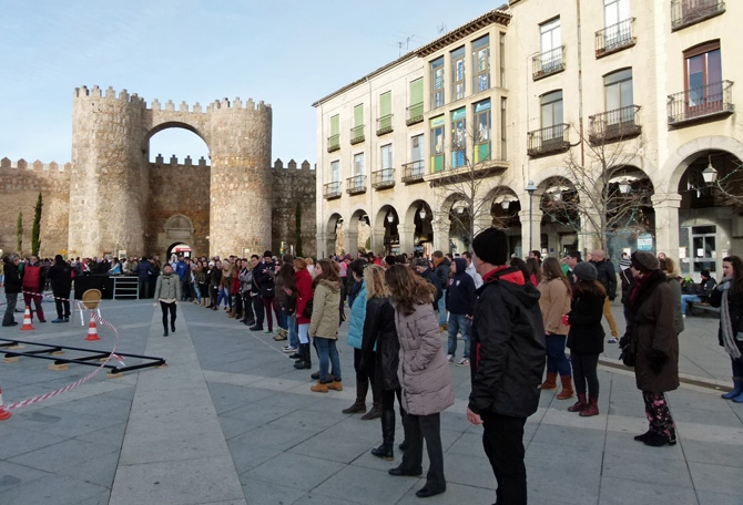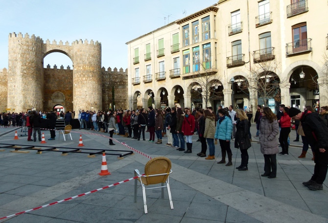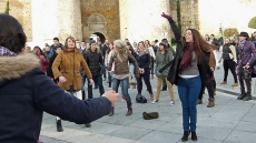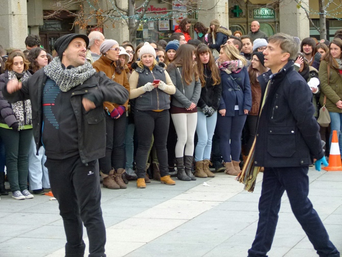 Con el termómetro sin superar los cinco grados, el Mercado Grande se convirtió en un gran plató para rodar un flashmob, desde las nueve de la mañana y hasta la tarde.