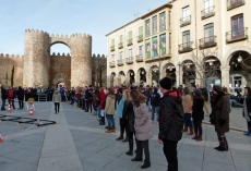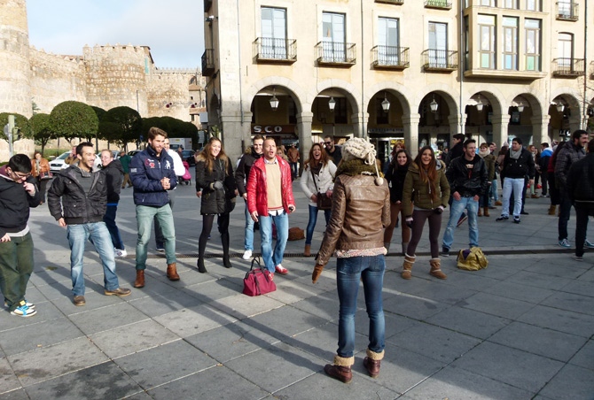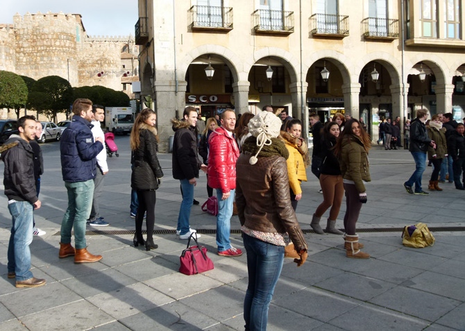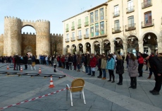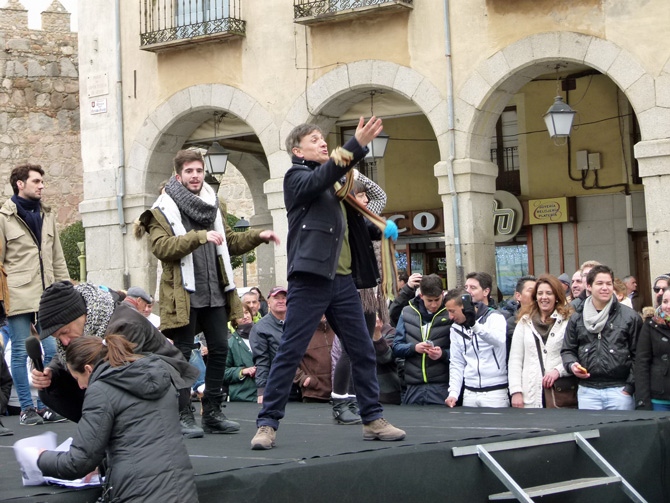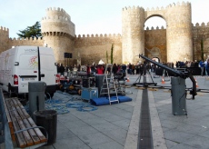 Primero se ha grabado una escena de Mota en el Paseo del Rastro, y después otra de la cantante en la calle San Segundo: luego llegó el encuentro entre ambos grupos en el Grande.