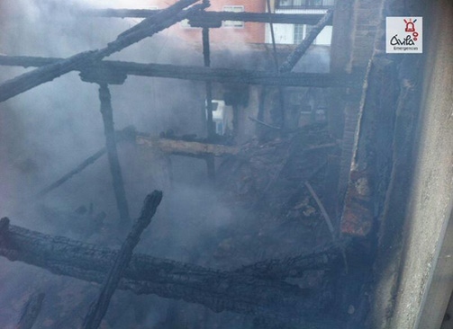 En Las Navas el fuego se ha quemado un edificio antiguo de dos plantas con estructura de madera, donde había un bar en el piso bajo, y donde los bomberos se vieron obligados a desalojar una manzana de viviendas.