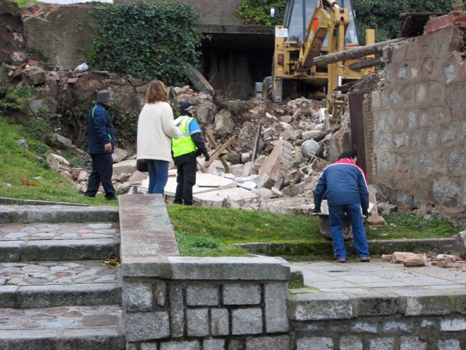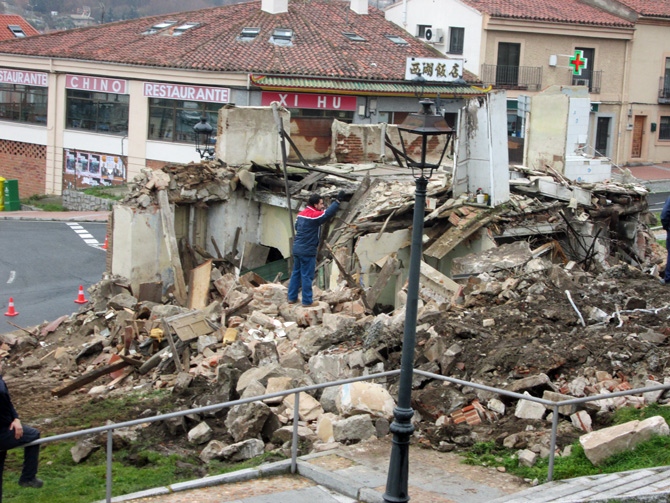 Con la vuelta a los trabajos se añadieron más agentes de Policía Local en el entorno e incluso, después, la colocación de vallas protectoras en el entorno, pero eso ya fue pasado el mediodía, tres horas después del inicio de la demolición, el lunes por la mañana.