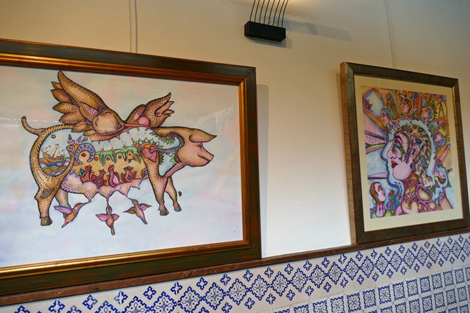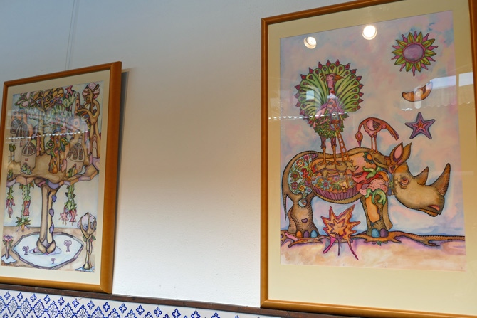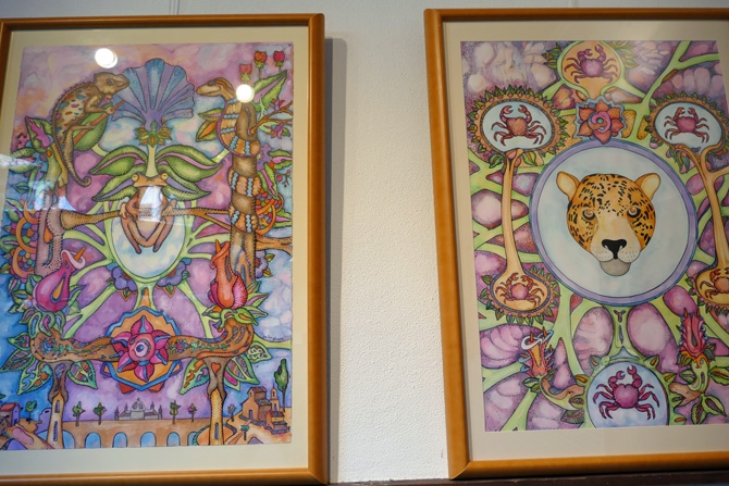 También coloridos, en el claustro del torreón José Luis Olivares cuelga cuadros oníricos, sobre todo dedicados a animales, en tinta china y gouache sobre papel, y óleos sobre tabla y lienzo. En sus obras deja ver su necesidad de evasión y de su mundo interior, en obras con las que quiere "descubrir un nuevo lenguaje para dar forma a sueños e inquietudes".