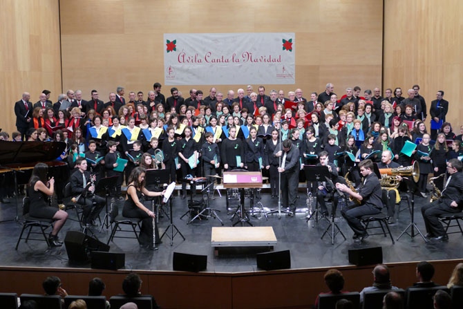 Una decena de instrumentistas de la Banda de Música Ciudad de Ávila, con la dirección -y arreglos- de su director, Juan Carlos de la Fuente, capitanearon a todos los integrantes de las seis formaciones corales que habían actuado antes.