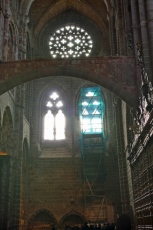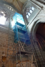 También se van a resolver los problemas que afectan a la estructura de madera, como la podredumbre de la cabeza oeste de la jácena más baja, y además se consolidará la tracería de piedra de las ventanas góticas que alojan las vidrieras, rejuntándolas y evitando el paso de agua entre sus piedras y se restaurarán las pequeñas vidrieras de la parte superior de las ventanas.