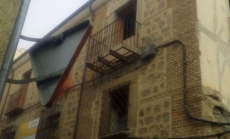 En la mañana del miércoles se acordonó parte de la acera para evitar el paso de peatones en unos metros de acera, justo debajo del chaflán del inmueble.