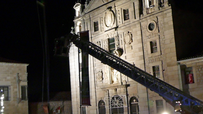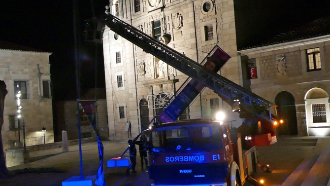 La afirmación municipal de haberlas retirado no era cierta del todo, porque de las 11 instaladas, al menos las dos de la plaza de La Santa intentaban seguir en pie y cimbraban repetidamente, incluso había caído al suelo la lona de una de ellas sobre las 22,30 horas.