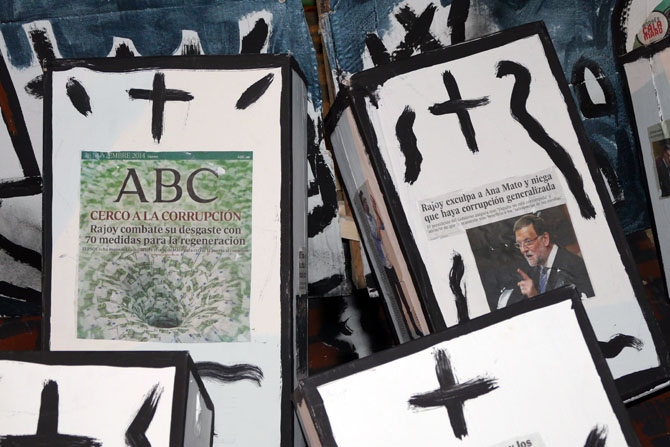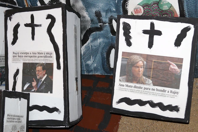 Y entre los monigotes que ardieron fue premiado uno que en realidad era un auténtico cuadro con varias figuras titulado 'El fantasma de la corrupción'.