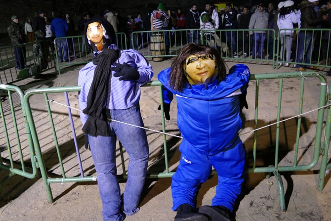 El frío no impidió que unas 300 personas se dieran cita en el atrio de San Isidro para cumplir con la quema de los muñecos, que ardieron en el fuego y se vayan con el año que termina. La hoguera calmó el frío en la celebración de Nochevieja típica de países como Colombia, Ecuador y Perú, que convoca cada año la Asociación Multicultural por la Integración (AMI).