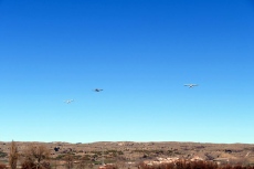 Los magos han viajado, cada uno acompañado por un piloto, a bordo de sendas avionetas Tecnam 92, Tecnam Sierra y Eurofox, que aterrizaron sobre las 13 horas en una de las cuatro pistas del aeródromo. Antes de aterrizar dieron dos pasadas a baja altura saludando, para luego descender de las aeronaves y ser aclamados por los niños.
