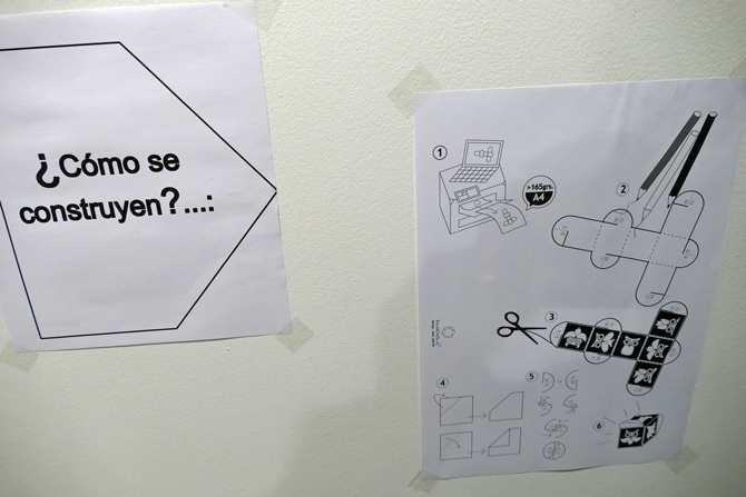 El autor prepara plantillas en papel o cartulina, como los recortables de toda la vida con pestañas para unirlos, que pueden colorearse, recortarse, doblarse y luego crear piezas con vida en tres dimensiones de todo tipo, figurativas o geométricas.