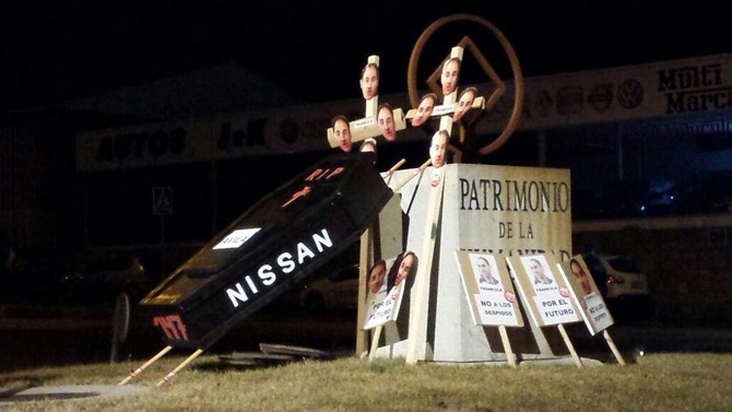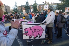 La manifestación contra los recortes y despidos ha contado con la participación de más de un millar de personas, entre ellos representantes políticos e institucionales, en una protesta en la que el máximo responsable de Nissan ha sido la diana de las críticas, bien cantando a favor de que trabaje en cadena e incluso quemando un muñeco.