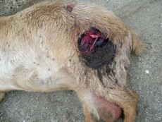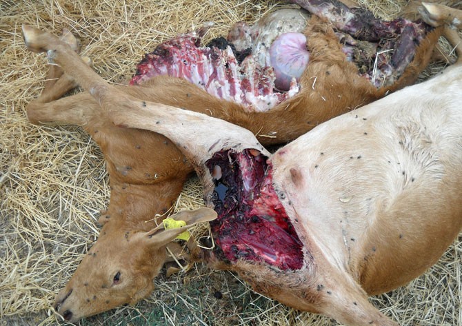 Siete cabras murieron y otras dos quedaron heridas, de las que de una de ellas se teme que muera, “a pesar de los esfuerzos por sanar las heridas causadas, principalmente en las nalgas”.