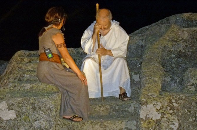 En una noche estrellada y sin luna, con vistas espectaculares del cielo y del Valle Amblés, fueron numerosos los espectadores que subieron desde Villaviciosa hasta el castro vettón para presenciar la historia de los problemas que sufre un poblado celta para celebrar la fiesta de Lugnasad -de la maduración del cultivo de bayas- por su druida y una curandera.