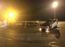 Un rato antes, a las 22,47 horas del miércoles, dos heridos leves de produjeron en el choque de un turismo contra un muro tras haberse subido a la acerra, en la calle José Bachiller.