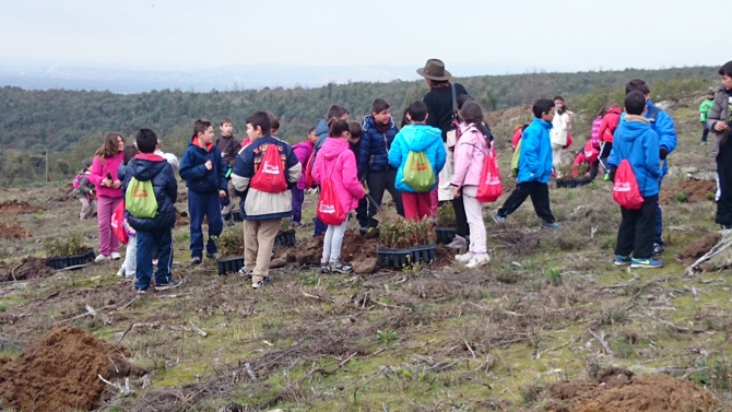 La plantación ha corrido de la mano de 118 niños del Colegio Público Almanzor, de Candeleda, y del Colegio Rural Agrupado Vettonia, de El Raso y Poyales del Hoyo, de segundo ciclo de Primaria, que han estado acompañados del presidente de la Diputación, Agustín González, y el alcalde de Candeleda, José María Monforte.