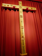 Completamente dorada y con estofados del siglo XVI, la cruz llama la atención porque la parte de atrás había sido dorada con pan de plata en vez de con plan de oro, pero con corlas que simulan el dorado, para abaratar su coste, según ha explicado Nuria Fuertes, de la empresa Castela, que se ha encargado de la restauración.